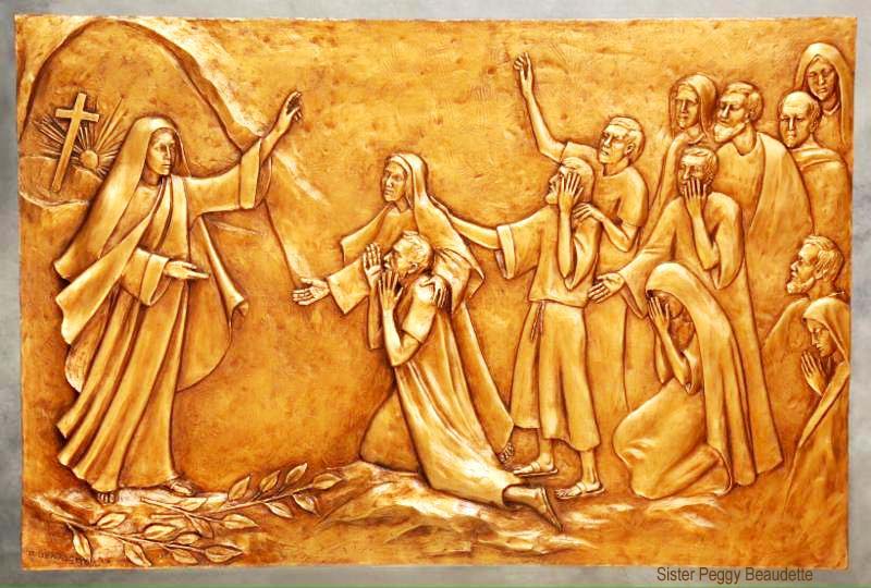 to summarize: 1. It is most likely that Jesus of Nazareth, being popular, had more than twelve followers. 2. The Bible mentions at least 15 individuals who constantly followed him and consistently supported him. 3. Of these 15, three were women who provided food and the provisions that allowed Jesus and his contingent to physically survive and continue with their work. 4. Of the three, one was known as Mary of Magdala. 5.Unrelated to the 15 followers, there were three female persons unnamed in the Bible who figured in the Gospels: a) one was said to have committed adultery; b) one was said to be a repentant “prostitute”; c) and one was said to be “sinful” and washed Jesus’s feet with her tears (on “Holy Wednesday”, see previous blogpost); 6. Pope Gregory “the Great” in the 6th Century (for reasons known only to him – blog admin) declared in a sermon that these three unnamed female individuals were one and the same person and none other than: Mary Magdalene. In 1969 however the Catholic Church quietly declared that Mary Magdalene was not a prostitute at all (bbc.com; etc.); but to this day, the reputation as blackened and destroyed by Gregory “the Great” remains. The following are excerpts from an investigation by the bbc.com (British Broadcasting Corporation): “Mary Magdalene is mentioned in each of the four gospels in the New Testament, but not once does it mention that she was a prostitute or a sinner. At some point Mary Magdalene became confused with two other women in the Bible: Mary, the sister of Martha, and the unnamed sinner from Luke’s gospel (7:36-50) both of whom wash Jesus’ feet with their hair. In the 6th Century, Pope Gregory the Great made this assumption official by declaring in a sermon that these three characters were actually the same person: Mary Magdalene, repentant saint. The Catholic Church did later declare that Mary Magdalene was not the penitent sinner, but this was not until 1969. After so long the reputation still lingers. “Mary Magdalene is considered a saint by the Roman Catholic, Eastern Orthodox, Anglican, and Lutheran churches with a feast day of 22nd July. The Eastern Orthodox churches also commemorate her on the Sunday of the Myrrhbearers which is the second Sunday after Pascha (Easter). She is also an important figure in the Bahá’í faith. xxx Mary of Magdala “Although we know something about Jewish society in ancient Palestine 2,000 years ago, we know very little about Mary herself. The Bible provides no personal details of her age, status or family. “Her name, Mary Magdalene, gives us the first real clue about her. It suggests that she came from a town called Magdala. There is a place today called Magdala, 120 miles north of Jerusalem on the shores of the Sea of Galilee. We do know there was also an ancient place called Magdala from literature. The name occurs in the New Testament, and also in Jewish texts. Its full name is Magdala Tarichaea. Magdala seems to mean tower, and Tarichaea means salted fish. If the name of the town was Tower of Salted Fish, it’s no surprise that its main business was fishing. As a woman living in Magdala, Mary may have worked in the fish markets. (blog admin’s note: On Luke’s testimony that “seven demons” were cast out of Mary of Magdala by Jesus of Nazareth, the National Geographic interviews of the scholars established that during those times, anybody who had any kind of sickness or ailment was said to have been infected by demons, and when they were healed, it was said that demons have been cast out of them). xxx “Luke chapter 8, tells us that Mary was one of Jesus’ followers and travelled with him. “Apocryphal texts “But the Bible isn’t the only source. In 1945 at Nag Hammadi, in southern Egypt, two men came across a sealed ceramic jar. Inside, they discovered a hoard of ancient papyrus books. Although they never received as much public attention as the Dead Sea Scrolls, these actually turn out to be much more important for writing the history of early Christianity. They are a cache of Christian texts. “The Nag Hammadi texts tell us about early Christians. They were written in Coptic, the language of early Christian Egypt. As most ancient Christian texts have been lost, this discovery was exceptional. “The discovery includes the Gospel of Thomas, the Gospel of Philip and the Acts of Peter. None of these texts were included in the Bible, because the content didn’t conform to Christian doctrine, and they’re referred to as apocryphal. They tend to concentrate on things that one doesn’t read about in the Bible. For example, New Testament gospels report that after the resurrection Jesus spent some time talking with the disciples, but you don’t learn much about what he said. In the gospels of Nag Hammadi you can read what he said. (bas relief by Sister Peggy Beaudette used here non-commercially for academic purposes)