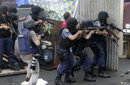 Yesterday’s violent clash between the protesters and the police in the Makati standoff resulted in serious injuries not only on the participants but also on reporters covering the siege, as well as Makati government employees and bystanders. International conventions and standards require that the management of media organizations (the heads of news organizations, editors, news directors, executive producers, publishers, owners, etc). should ensure that their reporters, camera-handlers, assistants, producers, production assistants, drivers, etc. have adequate gear to protect themselves in case the skirmish turns violent. Their gear should carry the press emblem in big, bold letters that visibly and properly identify them as members of the news media. The reporters should be briefed on where they should position themselves should rocks, bullets, pellets, chairs, baton, etc start flying in all directions. The news team and their assistants should also have the necessary experience, briefing and training on the coverage of riots and unruly protests. If management refuses to provide any means and measures for the safety of the news team, the union should demand that the news organization adhere to international conventions on the safety of journalists covering violent clashes.