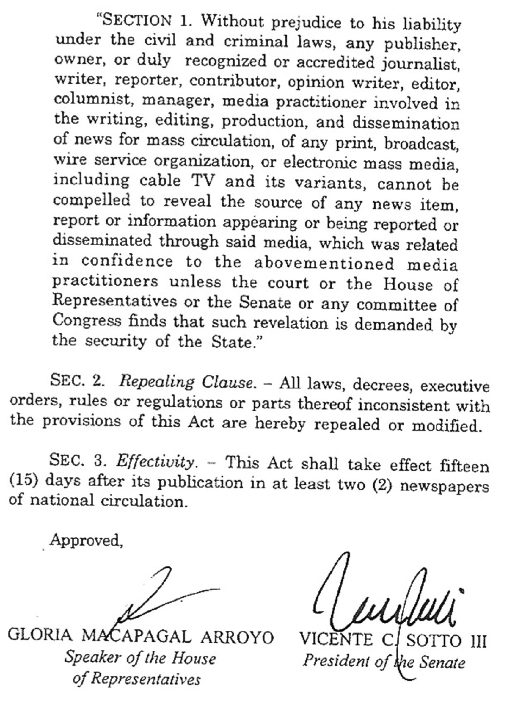 6 Dec. 2023, ABS-CBN interview on the Shield Law, from blog admin: “The better procedure (in citing for contempt) is not on the ground of not agreeing to disclose the source of information because we have a Shield Law but on the ground of disrespectful conduct (for behavior) … the Shield Law however provides in its first paragraph that it is without prejudice to any civil and criminal liability …” In other words: The first line in the Shield Law states that it is without prejudice to civil and criminal liability… This means that if the entire “report” is based on an anonymous or unnamed source throughout, and it is defamatory (e.g., it alleges wrongdoing based on an unnamed source, or a second-hand source such as a piece of paper written by someone with unnamed informants), the media practitioner can still be hauled to court or a congressional committee. In the University, we teach students to have two or more independent, first-hand sources — for investigative reports on corruption and other wrongdoing, we require multiple, independent first-hand sources some of whom, if push comes to shove, can be named and identified. The personalities involved here should have been cited for disrespectful conduct instead, and not for refusing to reveal their source because we wouldn’t want authentic journalists to be forced to disclose their confidential source.