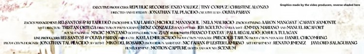 Production House: Toothless Edited and Directed by: Jonathan Tal Placido Producer : Kayla Embuscado Production Manager : Precious Tarun & Daniel chicombing Asst. Director : Tristan Ortega Director of Photography : renz gonzales Focus Puller : Jeb Agulto Camera Asst. : Emman Mariano & Manuel Ricafort Sound Engineer : Magic Montano Lighting Director : ZJ Uy Sessionists: Franco Tantay | Paul Regalado | Joshua Tulagan Line Producers: Rei Santos & Olivia Parian Produciton Designer : Jonathan Tal Placido 3D Artist : Miko del rosario Prod Design Assistant : Nic fabian & Lester Lambino Art Department : Renato Jimenez & Jaylord Salagubang Film Equipment : Motion Capture Lights and Sound: Scenium Catering: Sestra Quisina